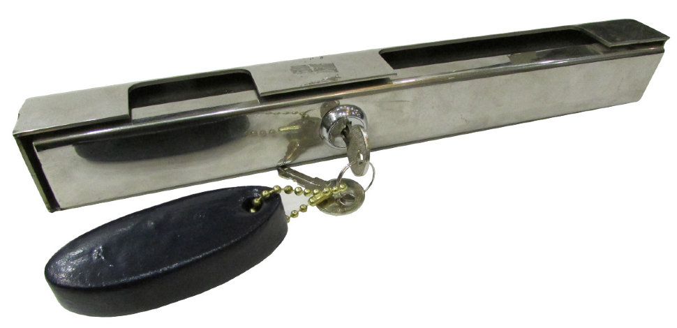 - Запирающий механизм не имеет дужек и дополнительно защищен корпусом с броненакладкой от извлечения личинки замка.